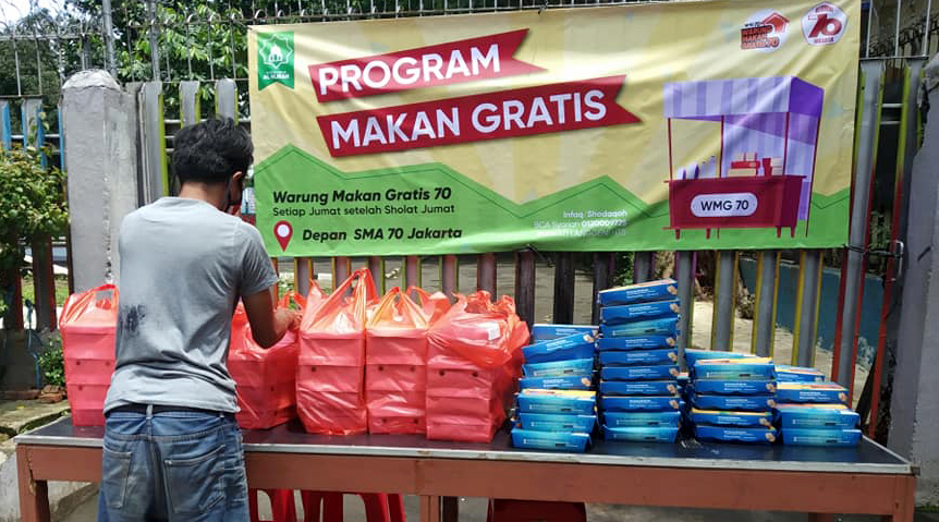 Program WMG 70 ini, jelasnya lagi, dibagikan setelah Sholat Jum’at, selain kepada karyawan sekolah SMA 70 yang masih bertugas pada hari Jum’at di masa PSBB ini.